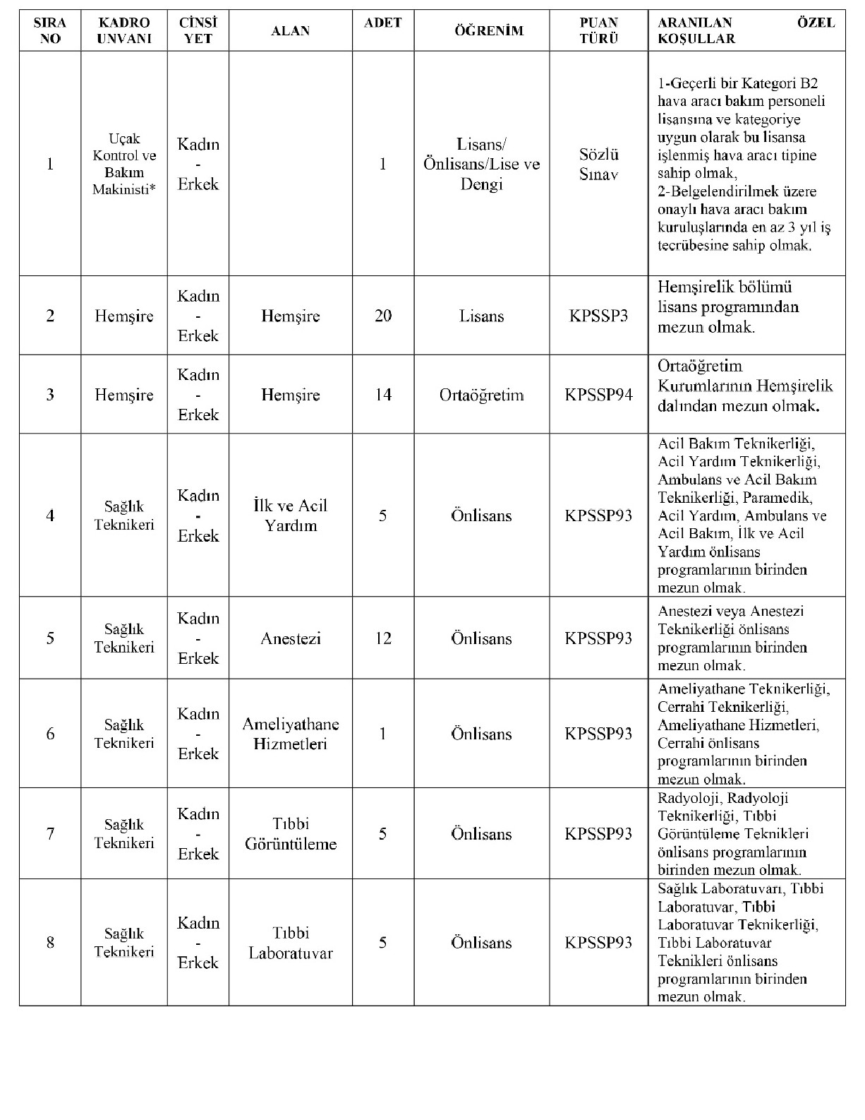 Alım yapılacak kadrolar arasında: