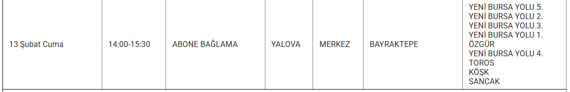 Yalova'da 13 Şubat günü birçok ilçede planlı elektrik kesintisi uygulanacak. Kesintiler, ilçelere göre farklı saat aralıklarında yapılacak.