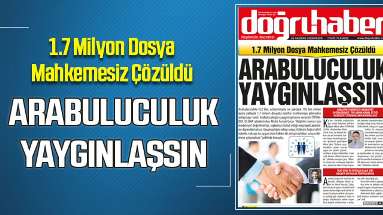 Arabuluculukta 932 bin, uzlaştırmada ise yaklaşık 756 bin olmak üzere yaklaşık 1,7 milyon dosyada taraflar mahkemeye gitmeden anlaşmaya vardı. Arabuluculuğun yaygınlaşmasını savunan İTTİHADUL ULEMA alimlerinden Molla Cemal Çınar, “Adaletin temini için medeniyet değerlerimizi, toplumun kabul ettiği meşruiyet zeminine dayandırmalıyız. Uyuşmazlığın sebep sonuç ilişkisini doğru tahlil ederek, vakıaya en uygun olan hüküm ile anlaşmazlıkları sona erdirmeye çalışmalıyız.” şeklinde konuştu.
