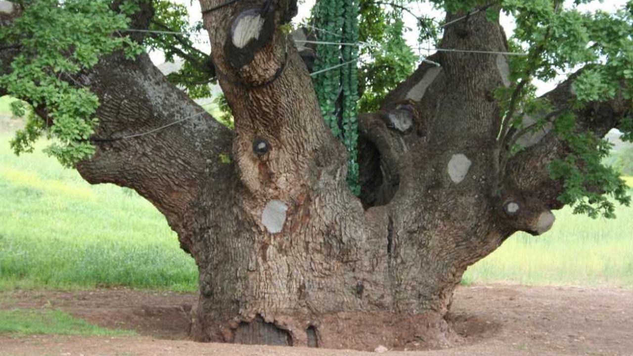 Geçmiş yıllarda ortasına demir direk dikilerek çelik hasatlarla bağlanan, gölge alanı 256 metrekare olan meşe ağacı, 2006'da tescil edildi.