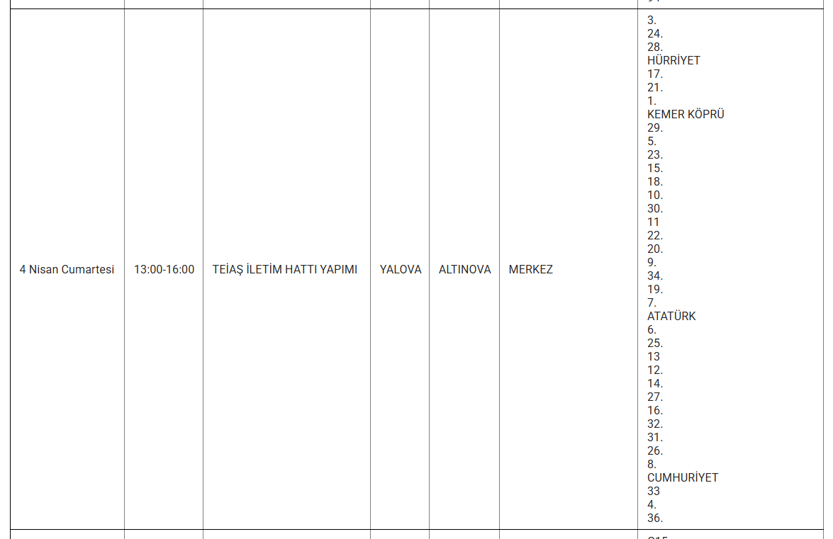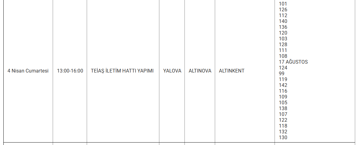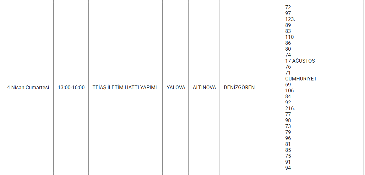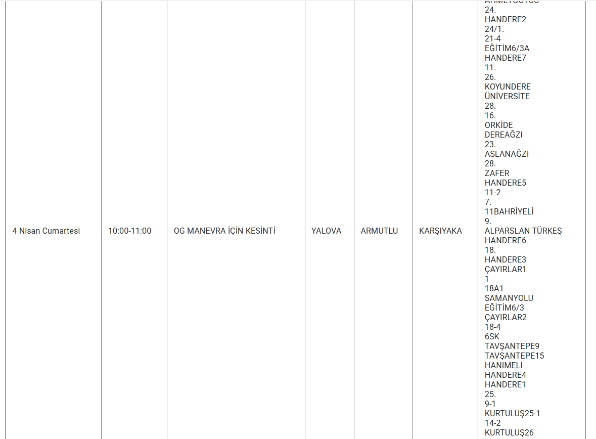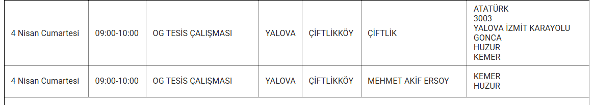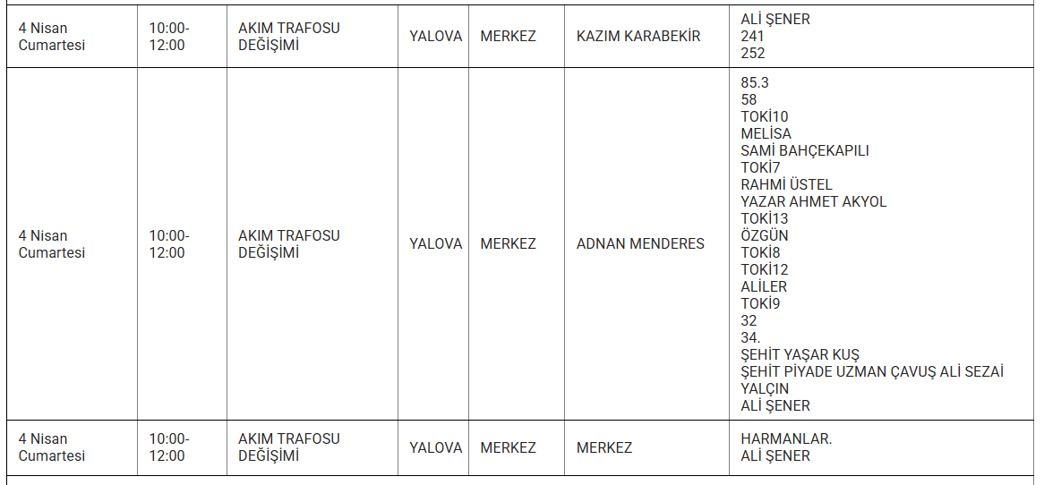 Uludağ Elektrik Dağıtım A.Ş., 4 Nisan 2026 günü Yalova’da uygulanacak planlı elektrik kesintilerinin kapsayacağı ilçe ve mahalleleri bildirdi. Peki, yarın (4 NİSAN) Yalova’da hangi alanlarda ve mahallelerde elektrik kesintisi yaşanacak?