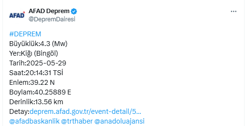 Deprem 13,56 km'de gerçekleşti.