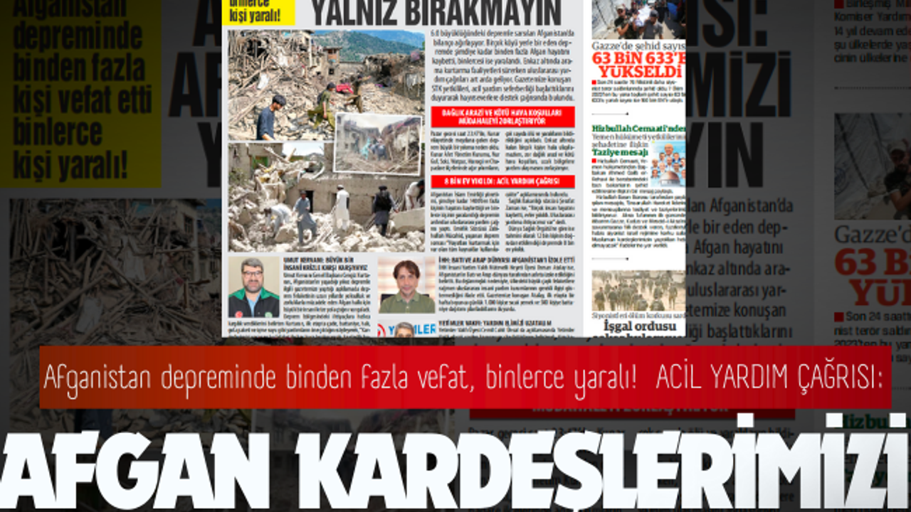 Afganistan’ın Kunar vilayetinde meydana gelen 6.0 büyüklüğündeki deprem en az 1.124 kişinin ölümüne, binlerce kişinin yaralanmasına ve köylerin yerle bir olmasına yol açtı. Enkaz altında arama-kurtarma çalışmaları sürerken, uluslararası yardım çağrıları art arda geliyor. Gazetemize konuşan Umut Kervanı Vakfı, İHH ve Yetimler Vakfı yetkilileri, acil yardım seferberliği başlattıklarını duyurarak hayırseverlere destek çağrısı yaptı.