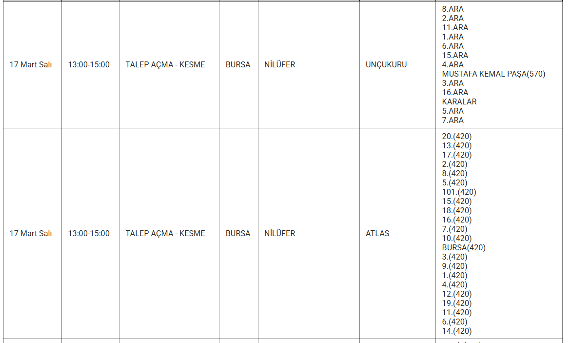 Bazı ilçelerde yarın başlayacak kesintiler 8 saat boyunca devam edecek. Peki, hangi ilçelerde kesinti yaşanacak? İşte 17 MART 2026 tarihli UEDAŞ kesinti programı;