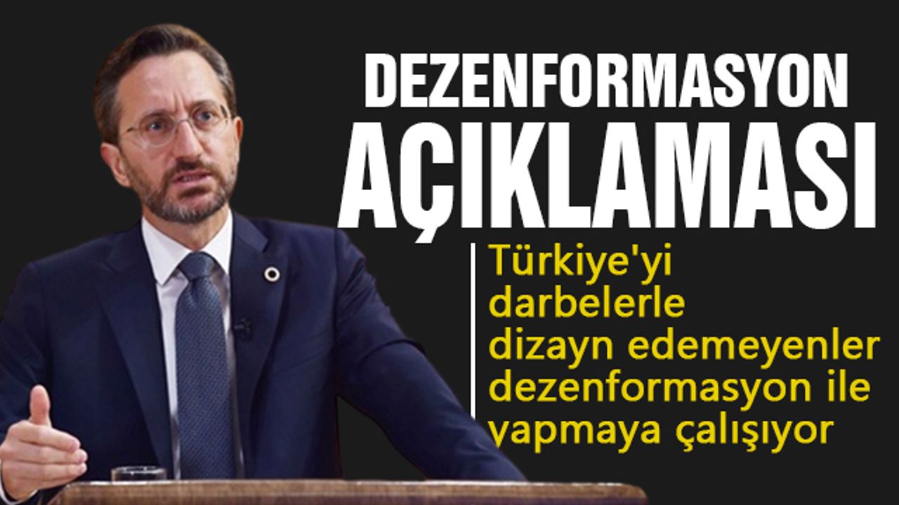 "Bildiğiniz üzere Türkiye, maksatlı yalan bilgiye, dezenformasyona dünyada en fazla maruz kalan ülkelerin başında geliyor. Türkiye'nin son 20 yıldır gösterdiği büyüme ve gelişmeyi durdurma çabaları, sistematik dezenformasyon siyasetiyle de kendini gösteriyor. Ülkemizi ve kurumlarımızı yıpratma girişimleri, siyasetten medyaya birçok alanda çok boyutlu saldırılarla yürütülüyor. Türkiye, bugünkü güçlü konumunu elde etmemiş olsaydı, itibarlı bir bölgesel güç ve bir küresel aktör olmamış olsaydı, bugünkü hâliyle sistematik dezenformasyon saldırılarıyla, bu bağlamda bir kuşatma girişimiyle karşı karşıya kalmayacaktı. Yalan haber ve dezenformasyon, yapay toplumsal kutuplaşmalar oluşturmak, siyasal istikrarı bozmak için bugün araçsallaştırılıyor. Vaktiyle Türkiye'yi askeri darbeler ve ekonomik saldırılarla dizayn etmeye çalışıp başarılı olamayanlar, bugün maksatlı yalan bilgi, dezenformasyon ile bunu yapmaya çalışıyorlar. Bu açıdan biz dezenformasyonla mücadeleyi millî bir vazife olarak görüyoruz. Bu noktada gerek TRT gerek Anadolu Ajansı ve gerekse millî medya kuruluşlarımız, bu süreçte çok ciddi bir etkinlik ortaya koyuyorlar ve bu mücadelenin baş aktörleri olarak sahnede rol alıyorlar."