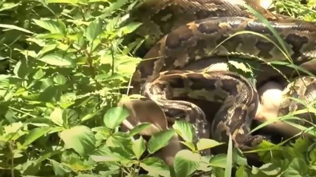 Görüntülerde ineğin verdiği mücadele de dikkat çekti. Dakikalarca yılana direnen inek, anakondanın tüm bedenini sarıp son hamlesini yapmasıyla birlikte çaresizce kaderine boyun eğdi.