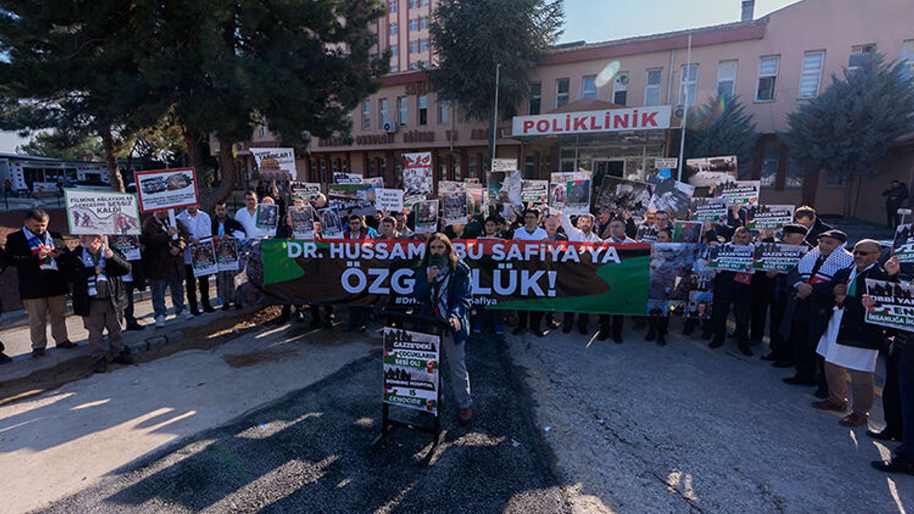 Dr. Abdurrahman Yurtaslan Ankara Onkoloji Eğitim ve Araştırma Hastanesi önünde bir araya gelen grup, işgal rejimin Gazze'deki hastaneleri ve sağlık çalışanlarını hedef almasını kınayan sloganlar attı.