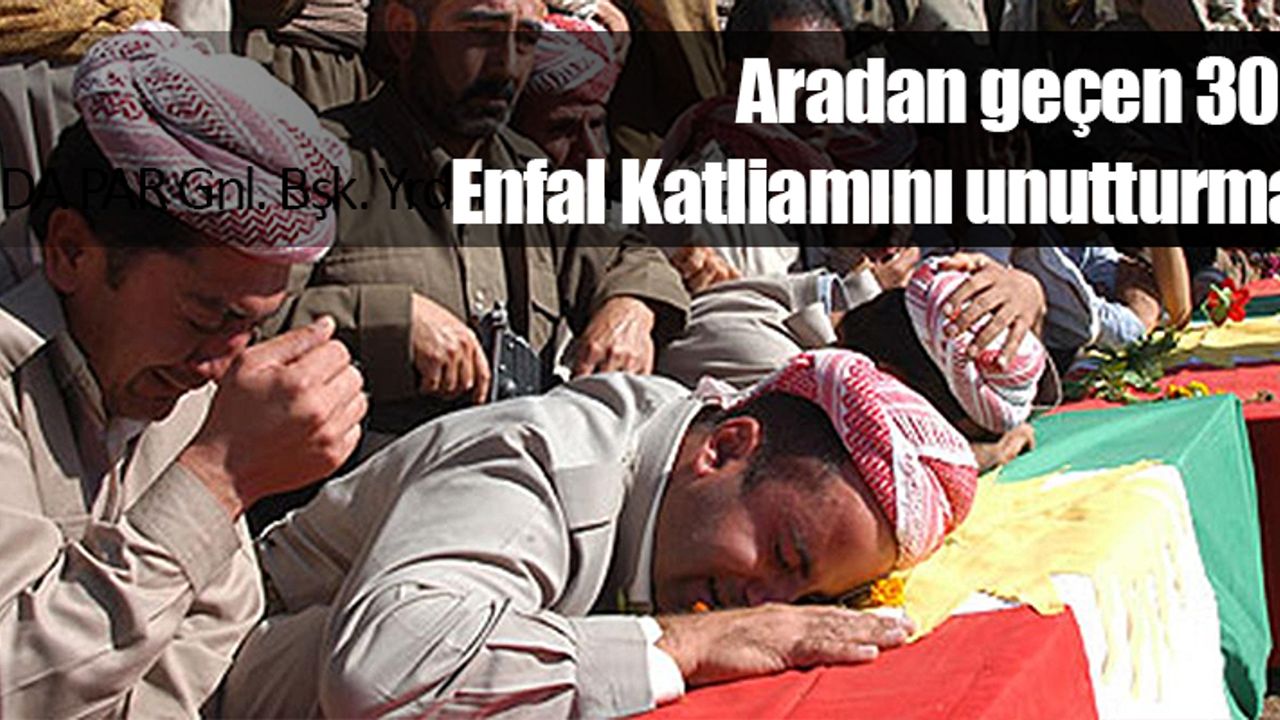Irak Kürdistan Bölgesinde enfal Katliamı'nın 30'uncu yılı nedeniyle anma etkinlikleri düzenleniyor. Gerçekleşen anma törenlerinde, resmi temsilcilerin yanı sıra, siyasi parti temsilcileri ve katledilenlerin yakınları hazır bulundu.