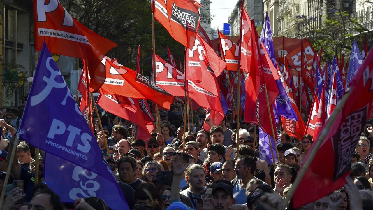 Başkent Buenos Aires'te toplanan binlerce Arjantinli, İnsan Sermayesi Bakanlığı önünde toplanarak, Başkan Milei hükümetinin politikalarını protesto etti.