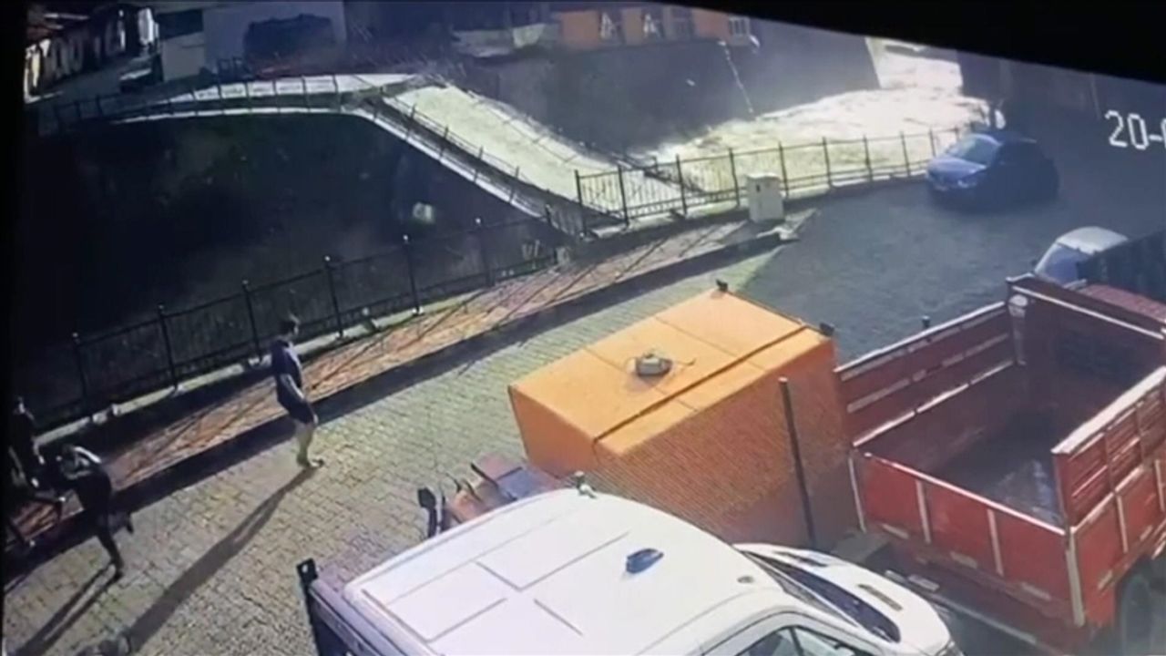 Köprünün yıkılma anı güvenlik kamerasınca kayıt altına alındı.