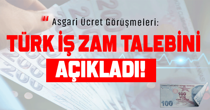 Türk-İş, asgari ücret talebini yüzde 45 enflasyon üzerinden refah payı eklenerek yüzde 20 refah payı ile 29 bin 583 lira olarak açıkladı.