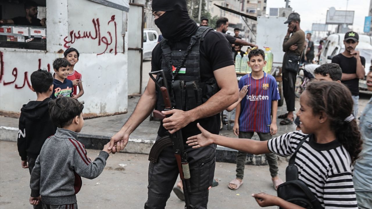 Gazze Şeridi’nin orta kesimindeki Deyr el-Belah kentinde, ateşkesin yürürlüğe girmesinin ardından polis ve güvenlik güçleri ana kavşaklarda konuşlanarak güvenliği sağlamak için devriye faaliyetlerine başladı.