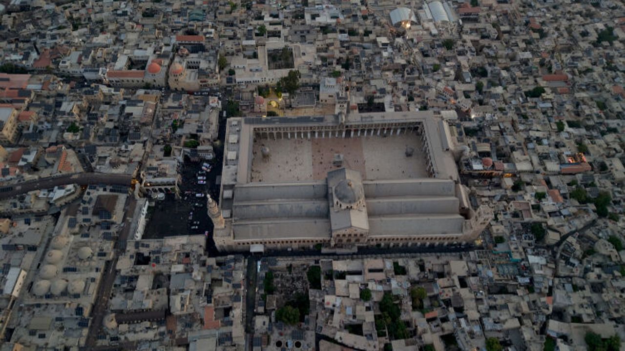 Başkent Şam’daki tarihi öneme sahip Emevi Camii'ne bayram namazı için binlerce kişi akın etti.