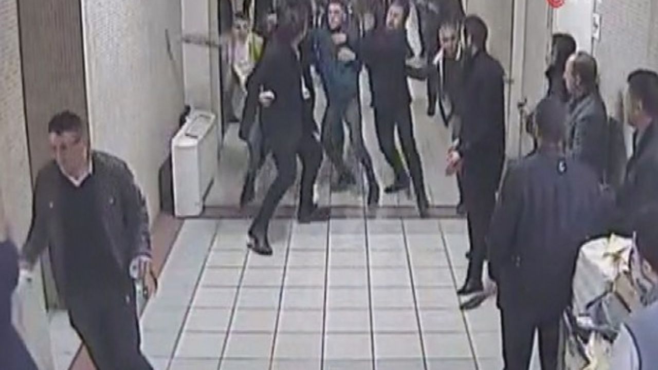 Adliye koridorunda bulunan güvenlik kamerası ise o anları saniye saniye kaydetti.