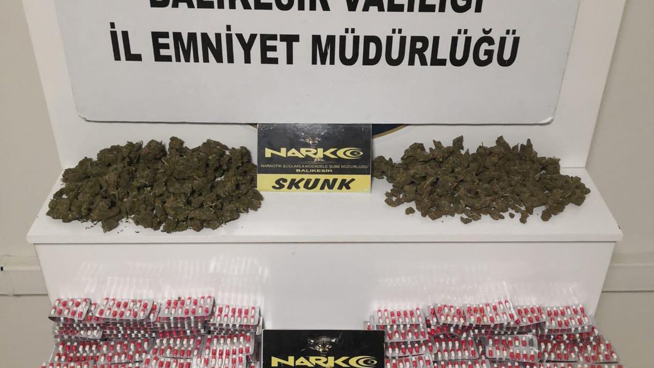 Balıkesir İl Emniyet Müdürlüğü Narkotik Suçlarla Mücadele Şube Müdürlüğü ekipleri, il girişinde durdurdukları aracın çeşitli bölmelerine gizlenmiş halde 1 kilogram 78 gram skunk esrar maddesi, 4 bin 158 adet sentetik ecza hap, 45 gram taş kokain, suçtan elde edildiği değerlendirilen 11 bin 25 TL ve 400 dolar ele geçirdi.