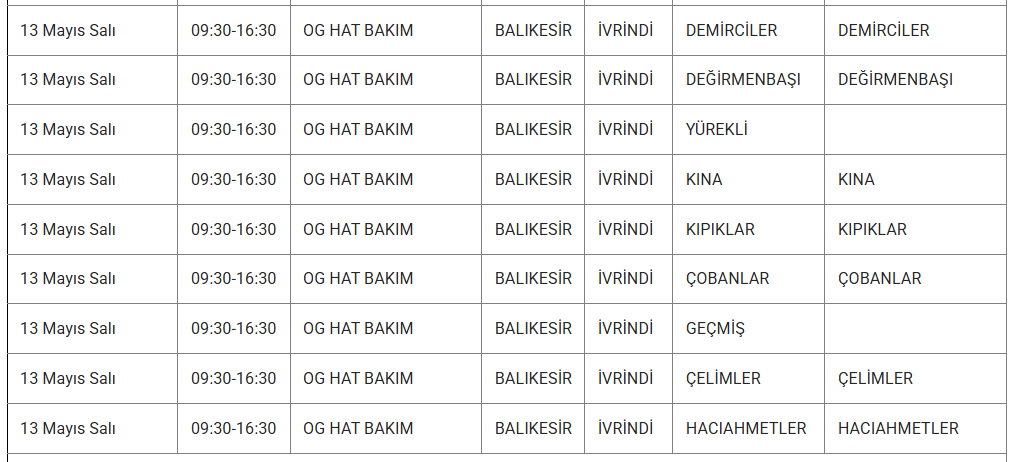 13 Mayıs Salı Elektrik Kesintisi Yaşanacak İlçe ve Mahalleler