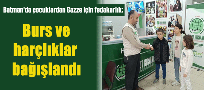11 yaşındaki Meryem Eslem Atalay, birkaç aylık burs parasını, 9 yaşındaki Yasin ve 7 yaşındaki Ahsen Zehra Atalay kardeşler de biriktirdikleri harçlıklarını Gazze'ye göndermek üzere Umut Kervanı Batman Derneği'ne bağışladı.
