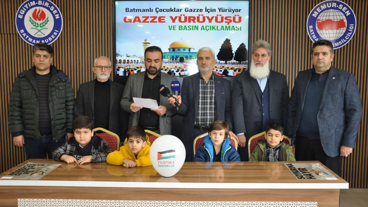 "Batmanlı Çocuklar Gazze İçin Yürüyor" temasıyla yapılacak yürüyüş hakkında Eğitim-Bir-Sen Batman Şube Başkanlığında bir basın açıklaması düzenlendi.