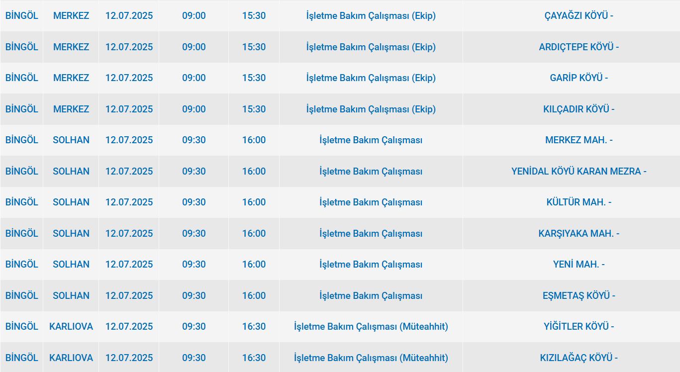 FIRATEDAŞ, Bingöl'ün 12 temmuz 2025 cumartesi günü bazı mahallelerde programlı bakım ve onarım faaliyetleri sebebiyle elektrik kesintisi olacağını ifade etti. Kesintiden etkilenecek ilçeler ve zaman dilimleri duyuruldu.