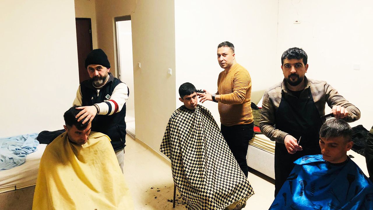 Bitlis"ten Adıyaman"a giden gönüllü ekipler, günde yüzlerce depremzedeyi ücretsiz olarak tıraş ediyor.