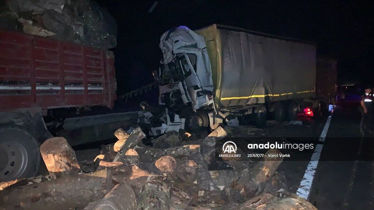 Çarpmanın etkisiyle kamyondaki bazı tomruklar yola düştü.