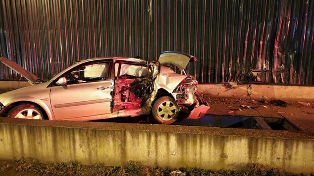 Kaçan zanlı Murat M, otomobille Bursa Caddesi'nde ilerlerken yol kenarındaki soğuk hava deposunun duvarına çarptı.