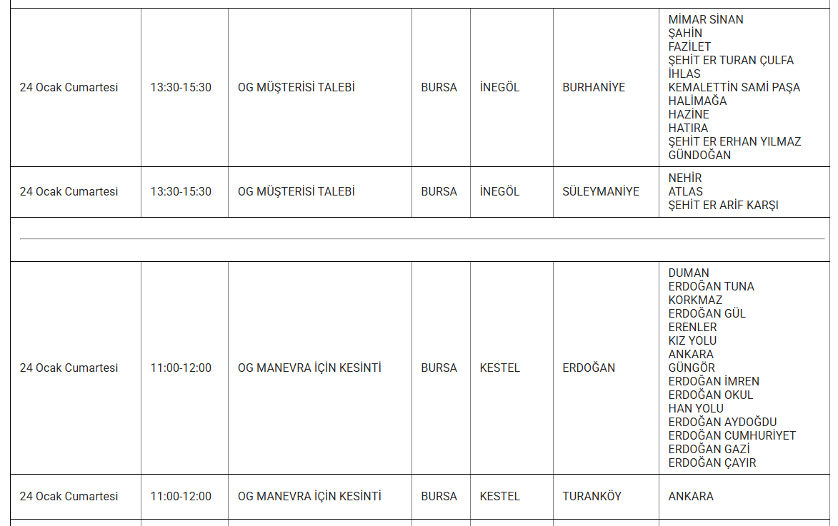 Uludağ Elektrik Dağıtım A.Ş. (UEDAŞ), 24 Ocak 2026 günü Bursa genelinde çeşitli bölgelerde elektrik kesintileri uygulanacağını duyurdu. Planlı kesintiler, bakım ve onarım çalışmalarının güvenli şekilde yürütülmesi için yapılacak. İşte etkilenecek ilçeler...