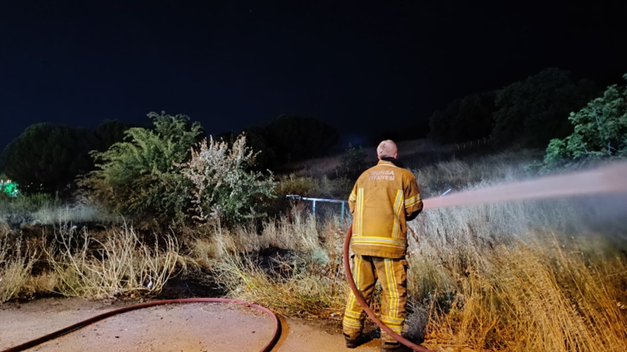 Mudanya Yolu Caddesi Çağrışan mevkiindeki otluk alanda iddiaya göre atılan havai fişekler nedeniyle yangın çıktı.
