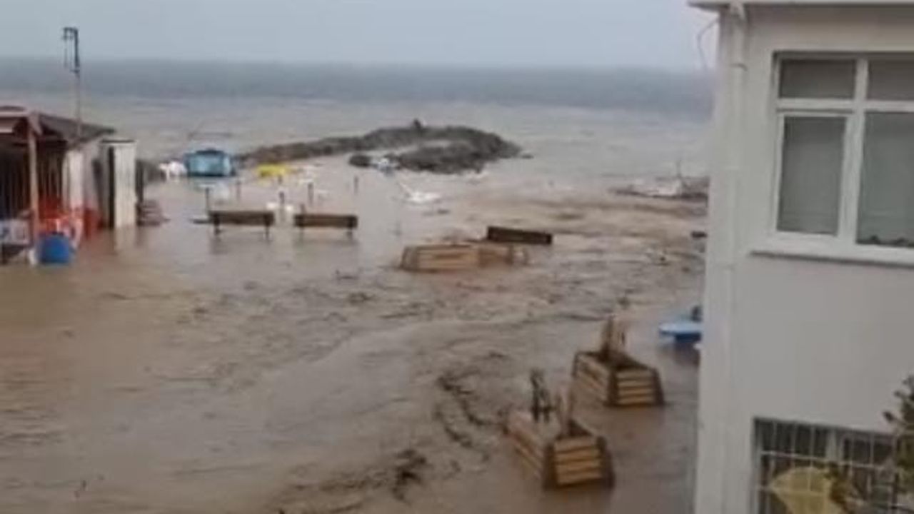 Mudanya Halitpaşa Mahallesi'nde sel nedeniyle karayla deniz birleşti.