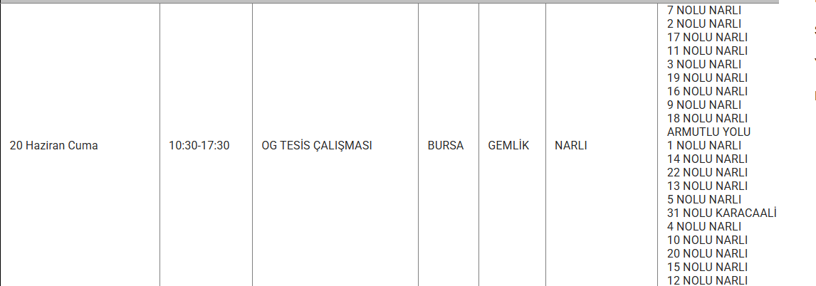 GEMLİK KESİNTİ SAATLERİ