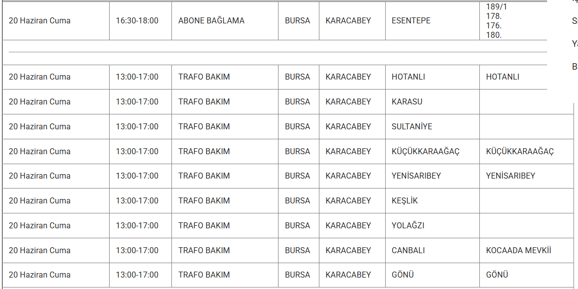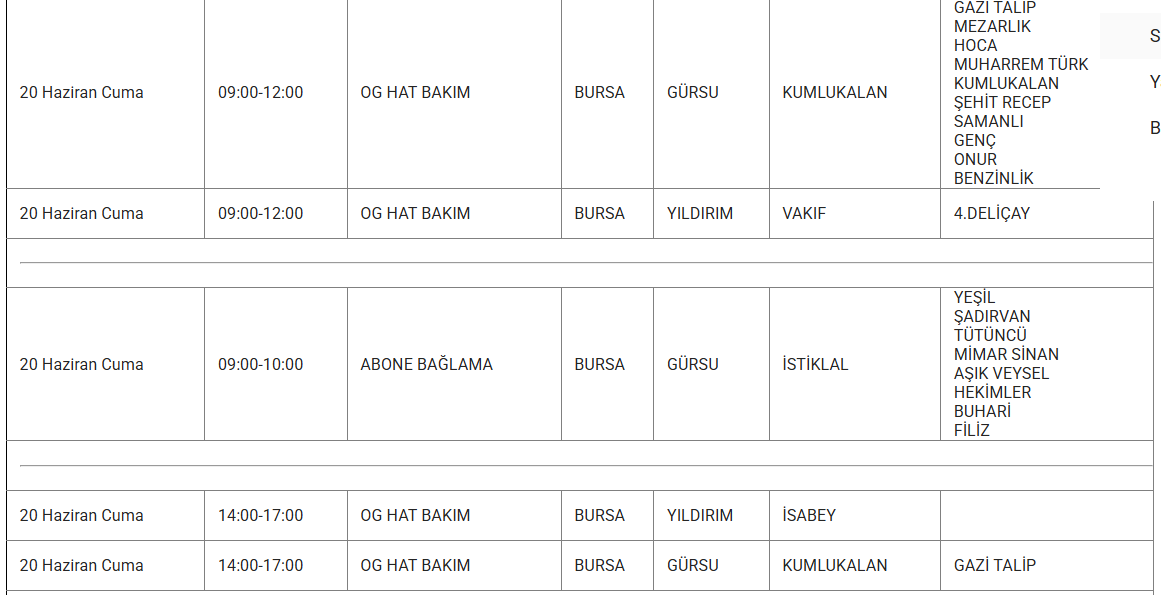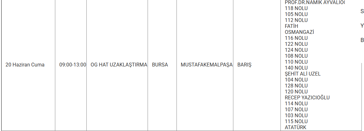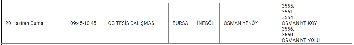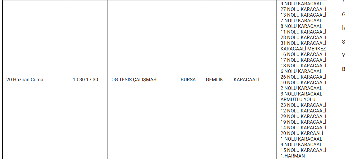 Bursa'nın bazı ilçelerine 20 Haziran'da elektrik verilemeyecek. UEDAŞ kesinti programında yer alan, kesinti yaşanacak ilçelerin listesi: