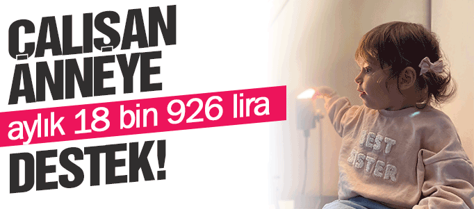 Tam zamanlı çalışan annelere aylık 18 bin 926 lira, yarı zamanlı çalışan annelere aylık 9 bin 462 lira verilecek.