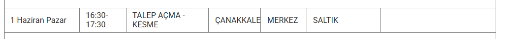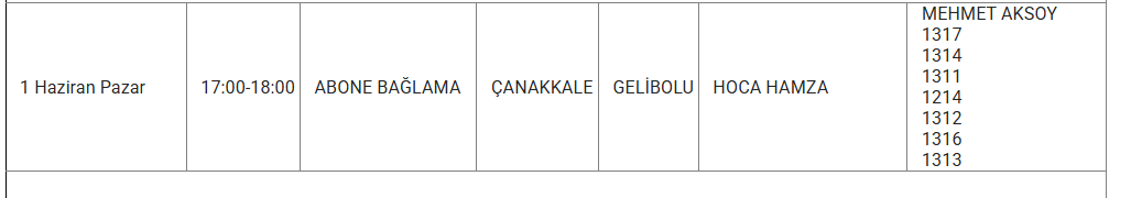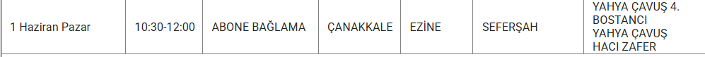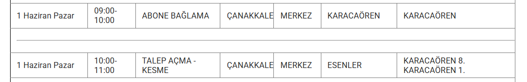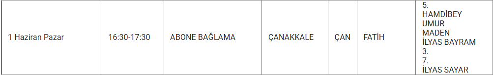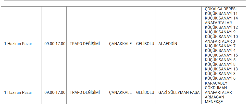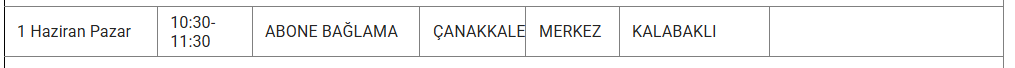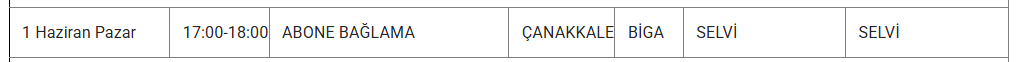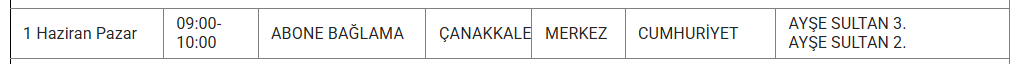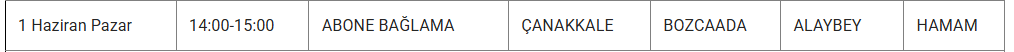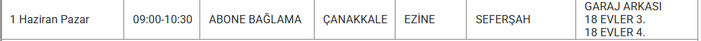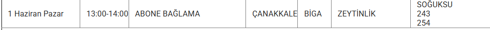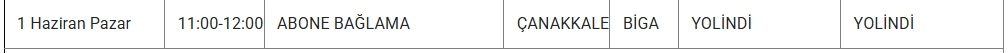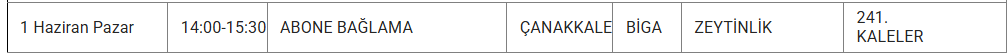 1 Haizran 2025 Pazar Çanakkale elektrik kesintisi