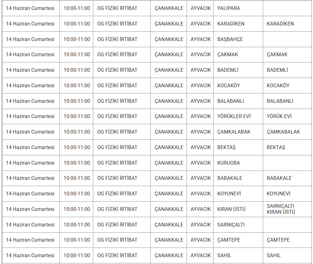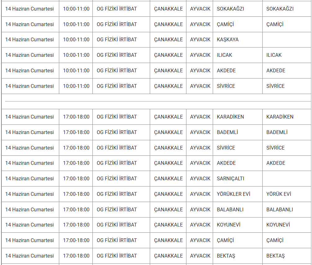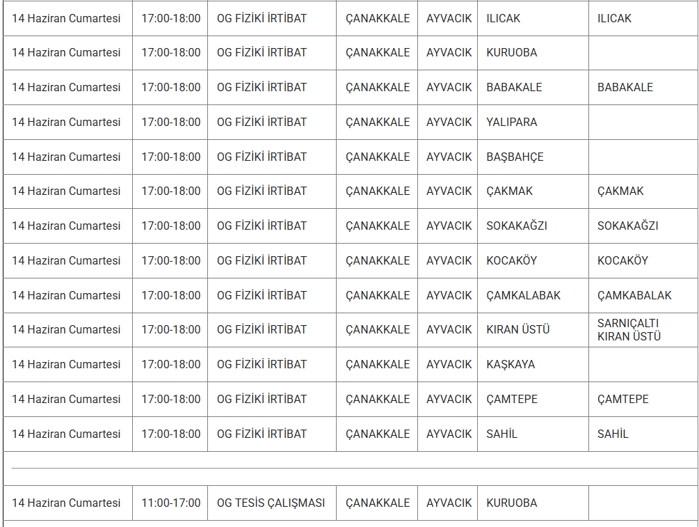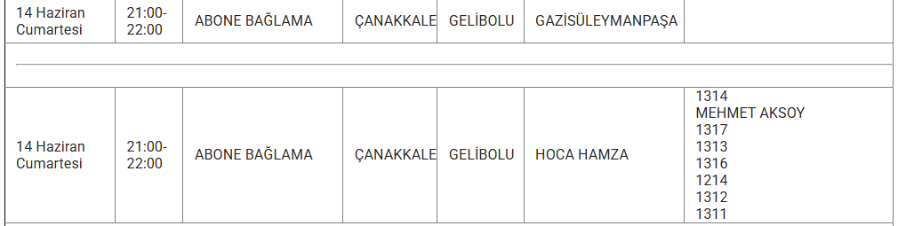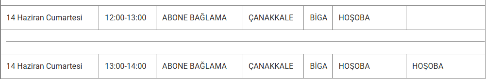 ÇANAKKALE 11 HAZİRAN ELEKTRİK KESİNTİSİ