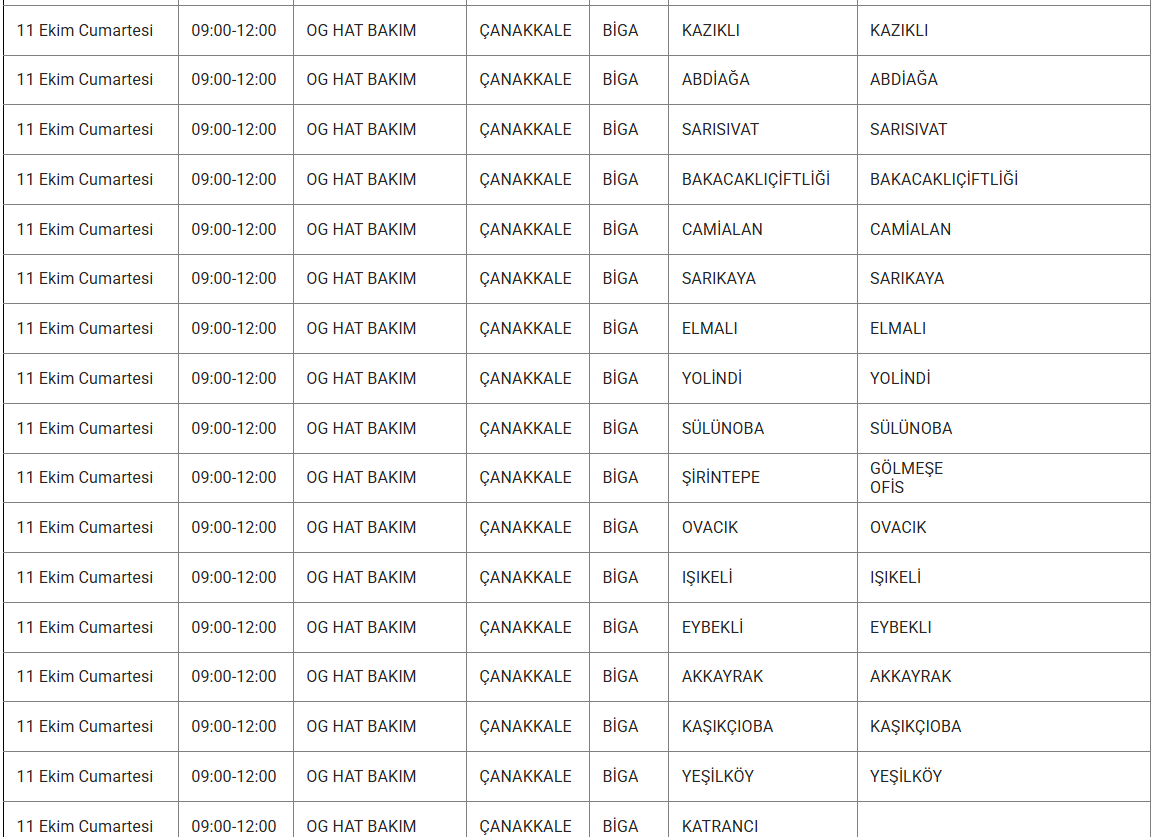 11 Ekim 2025 cumartesi günü Çanakkale'nin pek çok ilçesinde elektrik arızası yaşanacak. UEDAŞ Elektrik, bakım çalışmaları sebebiyle yapılacak kesintilerin saat ve bölge bilgilerini paylaştı. 11 Ekim 2025 Çanakkale elektrik kesintisi detayları..