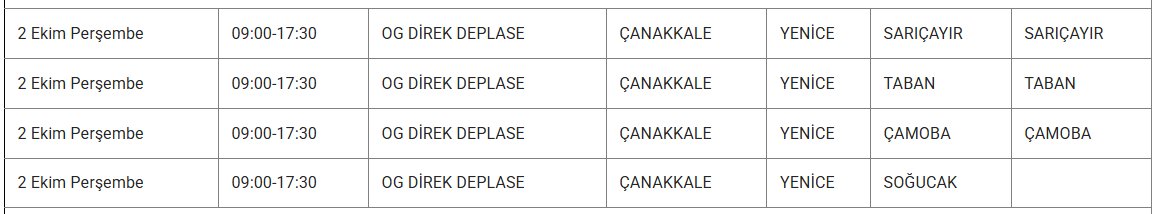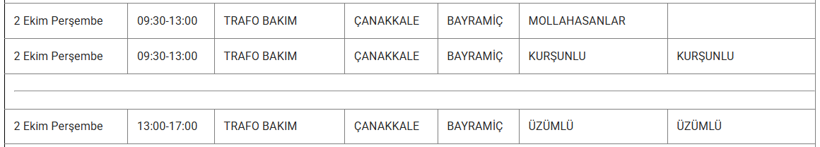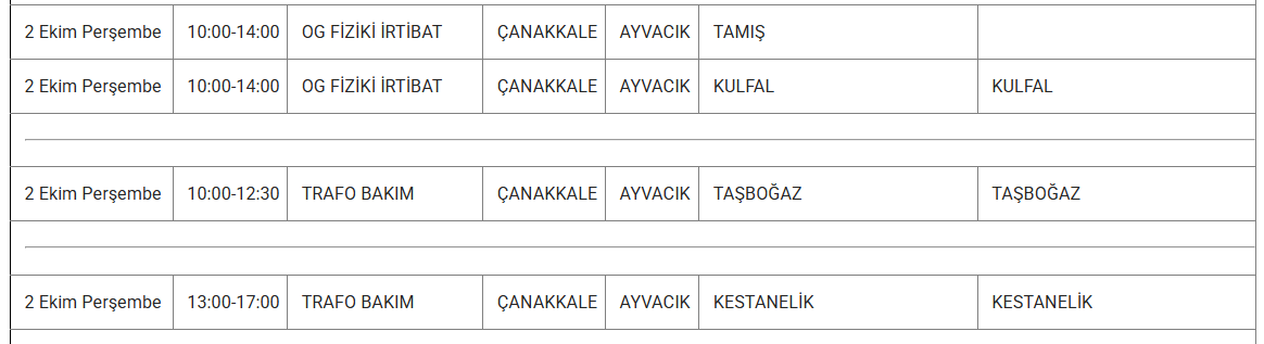 2 Ekim 2025 çarşamba günü Çanakkale'nin pek çok ilçesinde elektrik arızası yaşanacak. UEDAŞ Elektrik, bakım çalışmaları sebebiyle yapılacak kesintilerin saat ve bölge bilgilerini paylaştı. 2 Ekim 2025 Çarşamba Çanakkale elektrik kesintisi detayları..