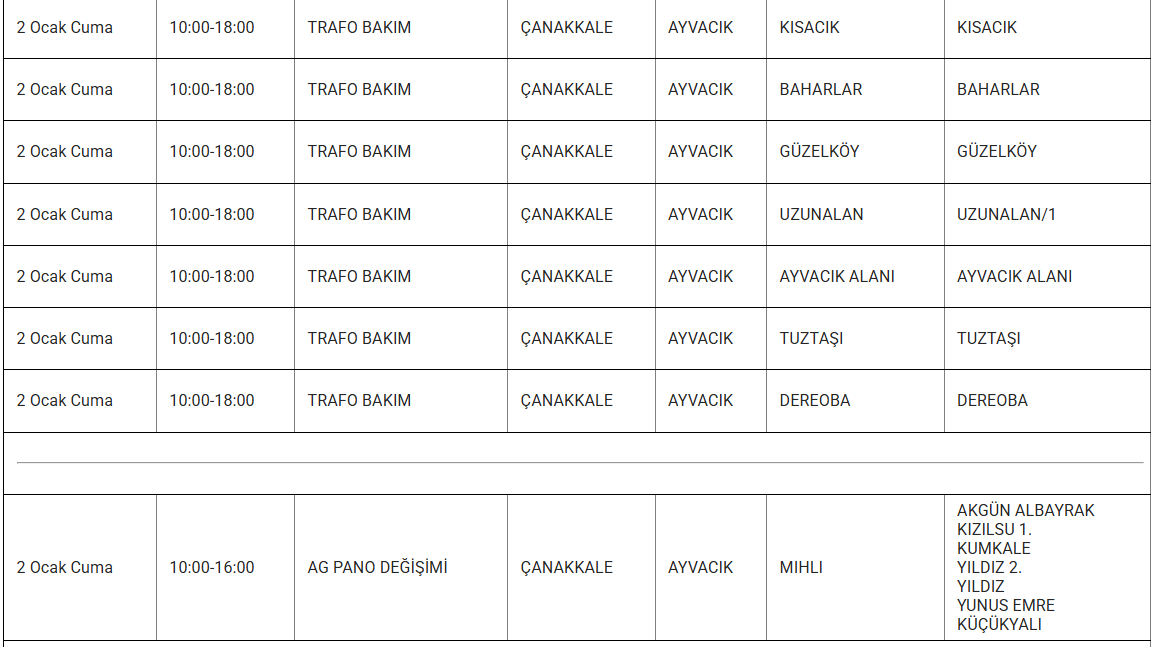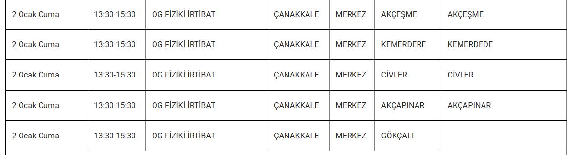 2 Ocak 2025 günü Çanakkale'nin pek çok ilçesinde elektrik arızası yaşanacak. UEDAŞ Elektrik, bakım çalışmaları sebebiyle yapılacak kesintilerin saat ve bölge bilgilerini paylaştı. 2 Ocak 2025 Çanakkale elektrik kesintisi detayları..