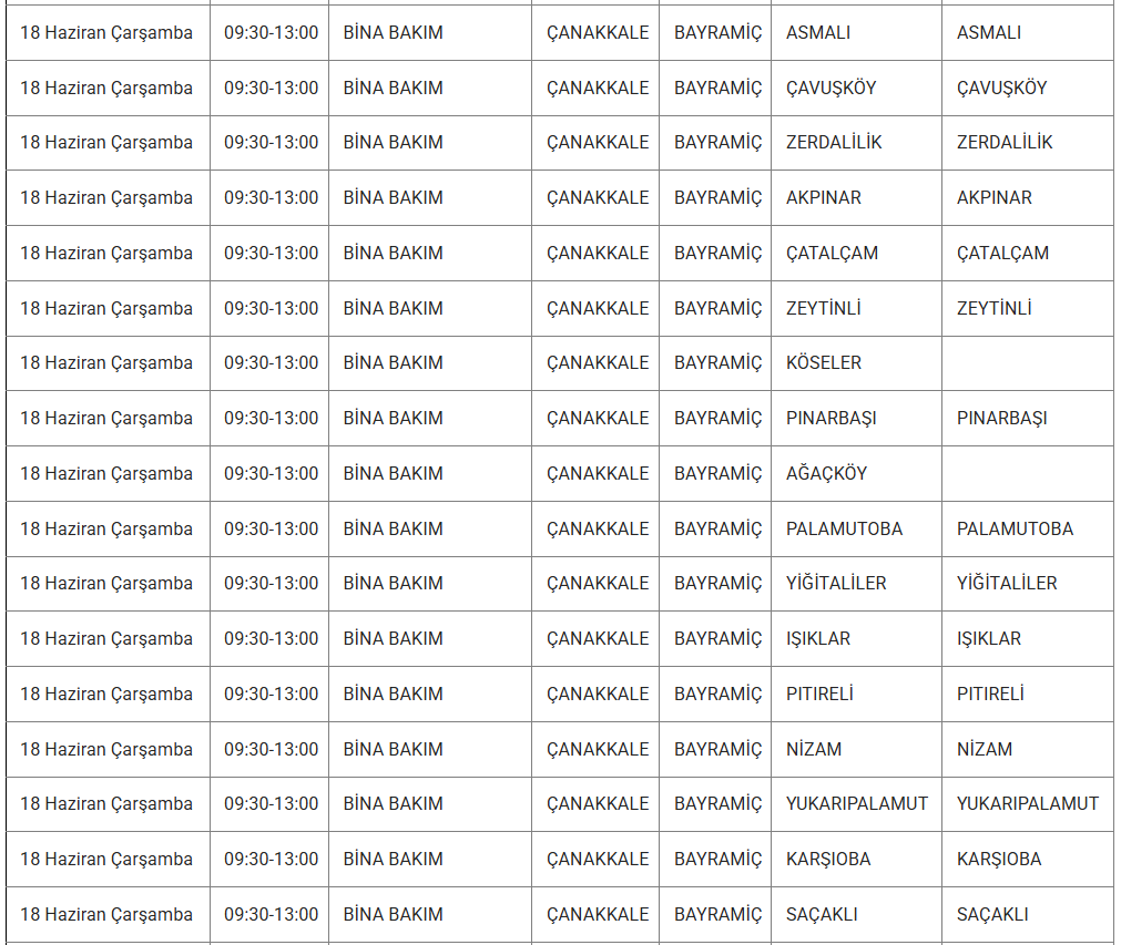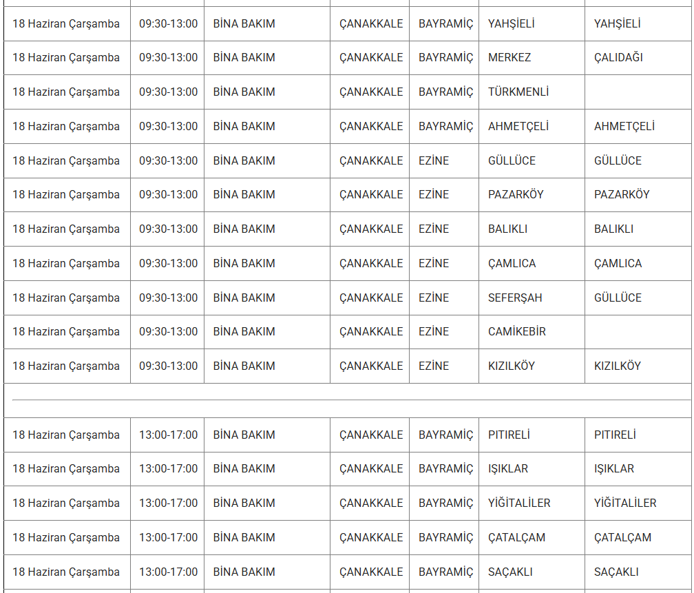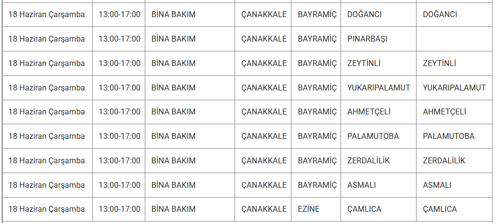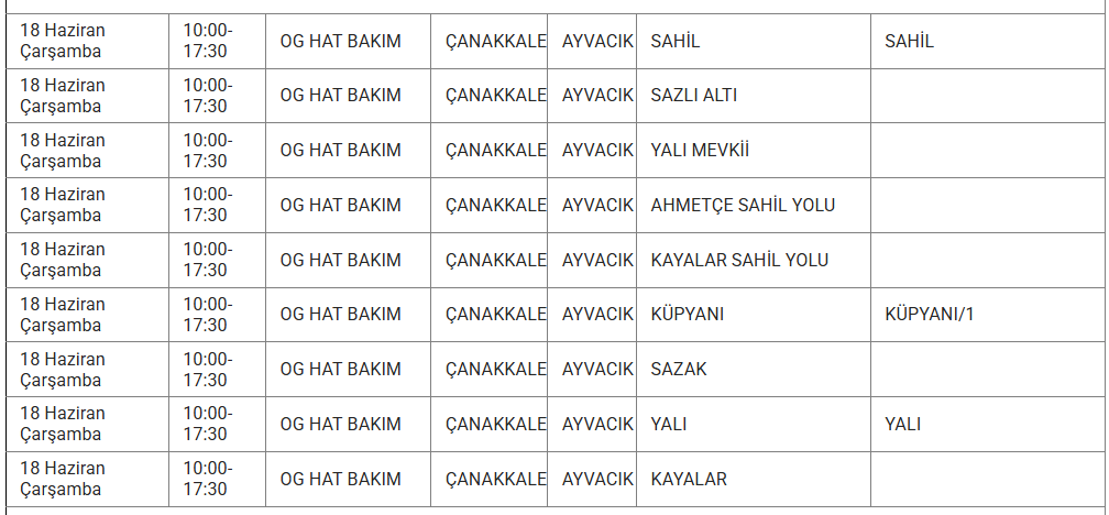 ÇANAKKALE 18 MAYIS ELEKTRİK KESİNTİSİ
