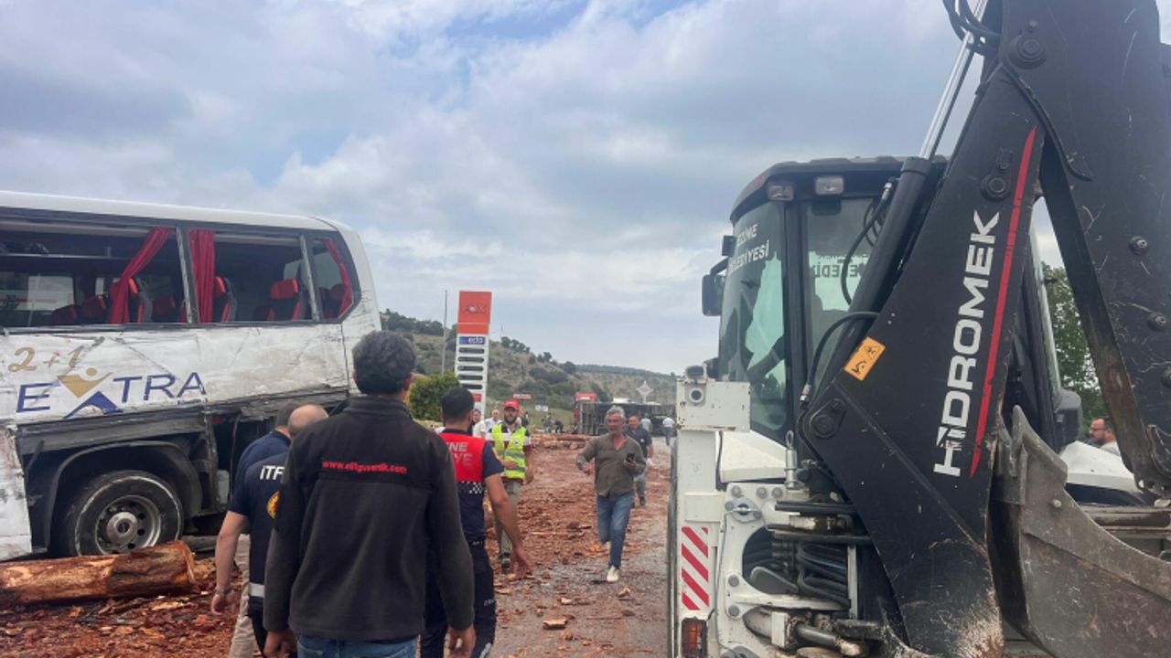 Çanakkale-Ezine kara yolunda Çanakkale Truva Turizm'e ait yolcu otobüsü, odun yüklü kamyon ve otomobil çarpıştı.