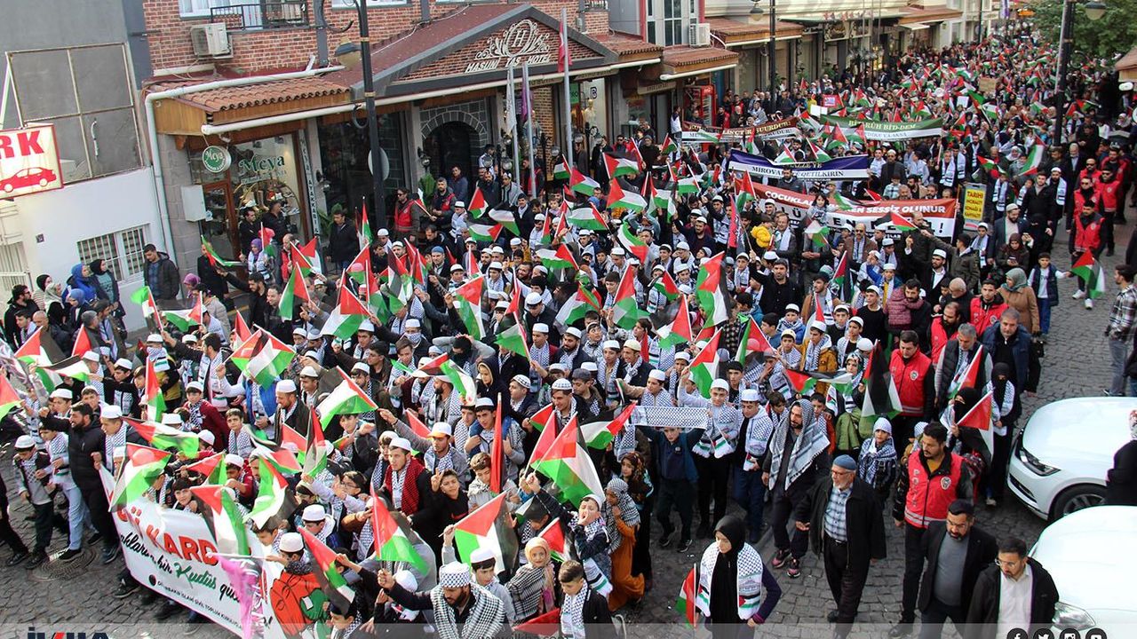 The march, which concluded at Hazrat Suleiman Mosque, included a press statement delivered by 11-year-old Elif Sara Zeybek. Accompanied by takbir and slogans, the event aimed to express empathy for the children affected by the conflict and to convey a message of hope and solidarity.
