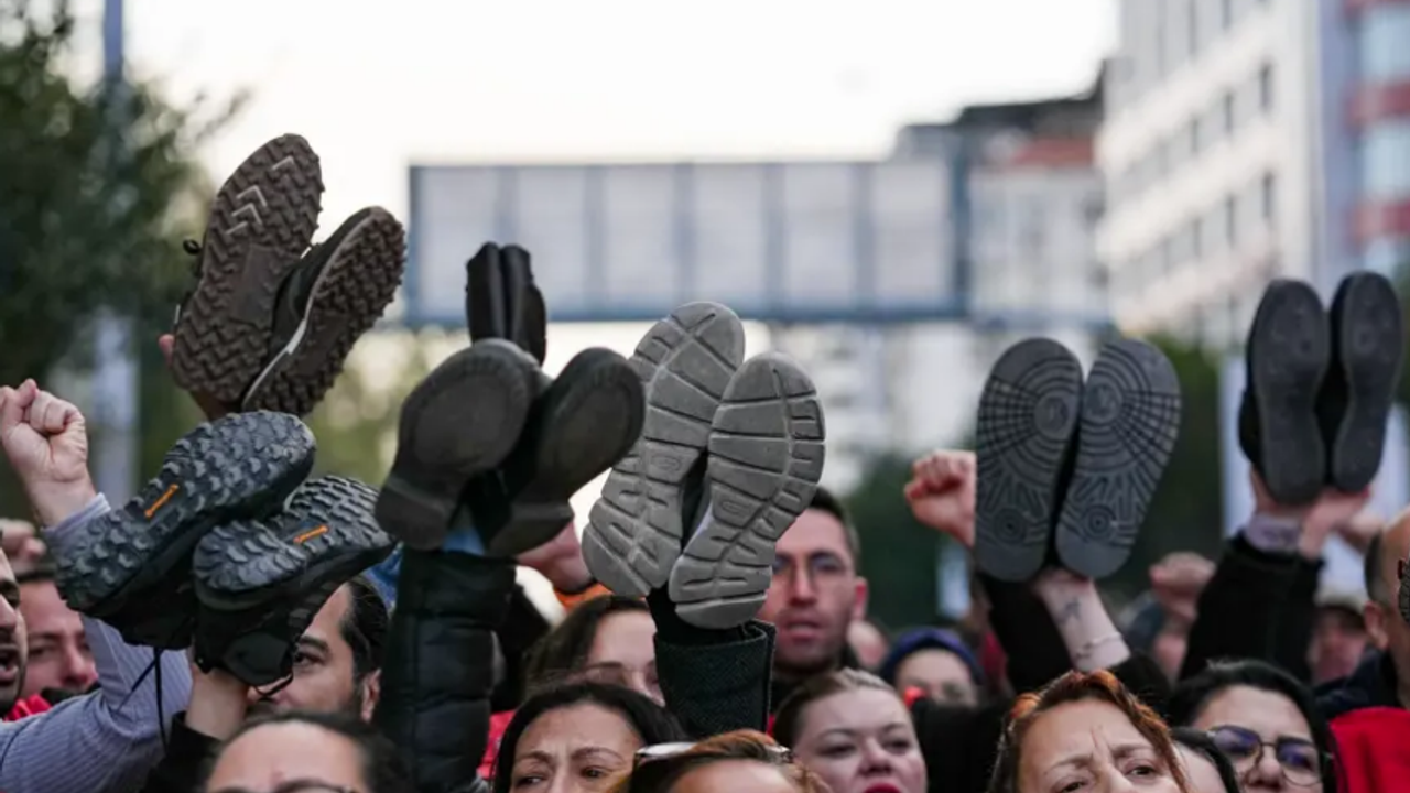 İşçiler ayakkabılarını ve çoraplarını çıkararak Mürselpaşa Bulvarı'ndan Kültürpark 9 Eylül Kapısı'na kadar yürüdü. Yürüyüş sırasında slogan atan işçiler, ellerindeki ayakkabıları salladı.