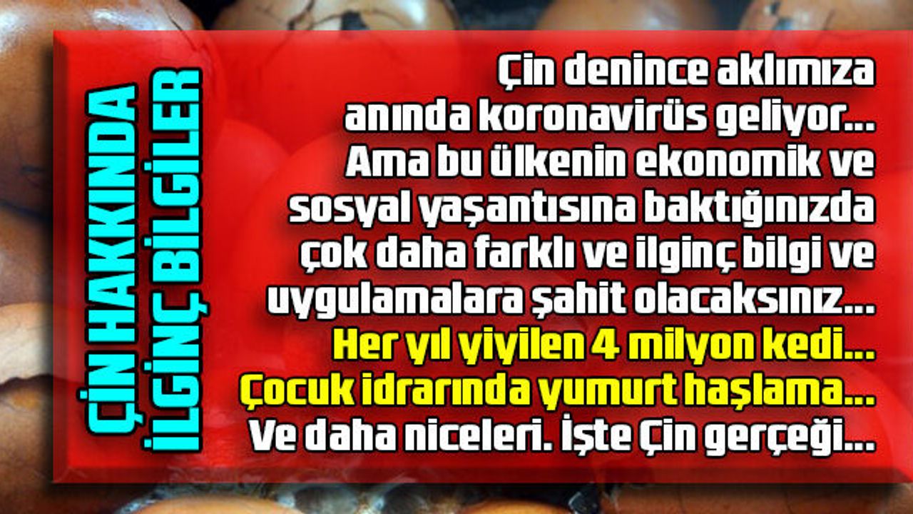 Bugün Çin dendiğinde aklımıza ilk gelen Koronavirüs... Çin'de ortaya çıkan ve bütün dünyayı etkisine alan salgın insanlığa tehdit olmayı sürdürüyor. Bazı kesimler Çin'in başta gıda tüketimi olmak üzere hayat tarzına yönelik eleştirilerini sürdürürken bazı kesimler de bu ülkedeki ekonomik ve sosyal yapının radikal uygulamalara maruz kalmasının yeni yeni tehditlere de kapı aralayacağı kanaatinde..