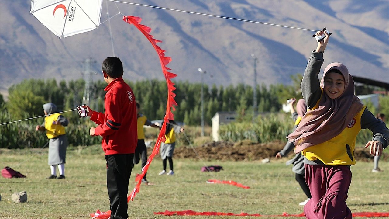 Dağıtılan uçurtmaları, okulun yanındaki arazide uçuran çocuklara pamuk şeker ikram edildi.