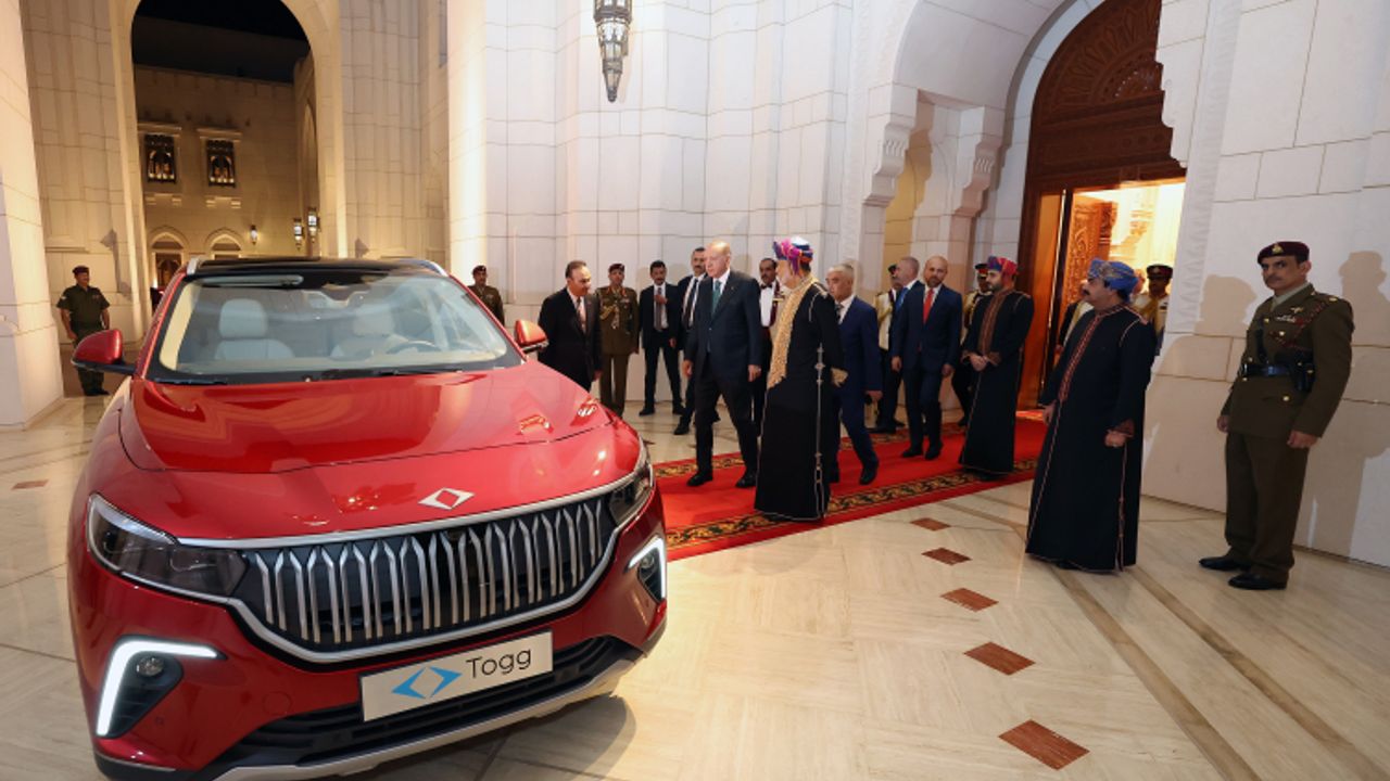 Erdoğan, görüşmenin ardından Heysem bin Tarık'a kırmızı renkte Togg hediye etti.