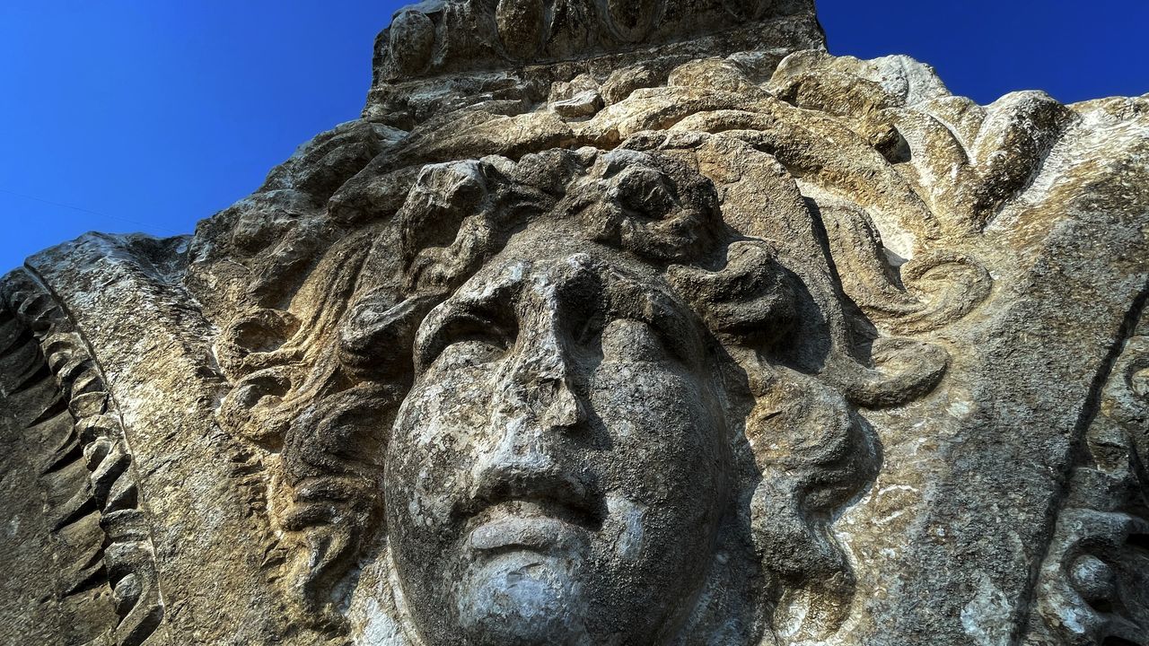 Antik kentin tiyatro bölümündeki kazılarda 2 bin yıllık medusa, mask heykelleri ile groteks figürü ve tonoz bulundu.