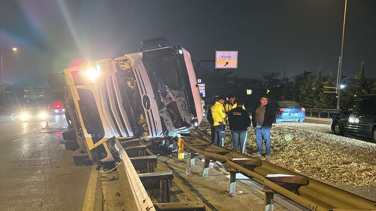 Sürücü kazayı yara almadan atlatırken, tırın devrilmesi sonucu yol bir süre trafiğe kapalı kaldı.