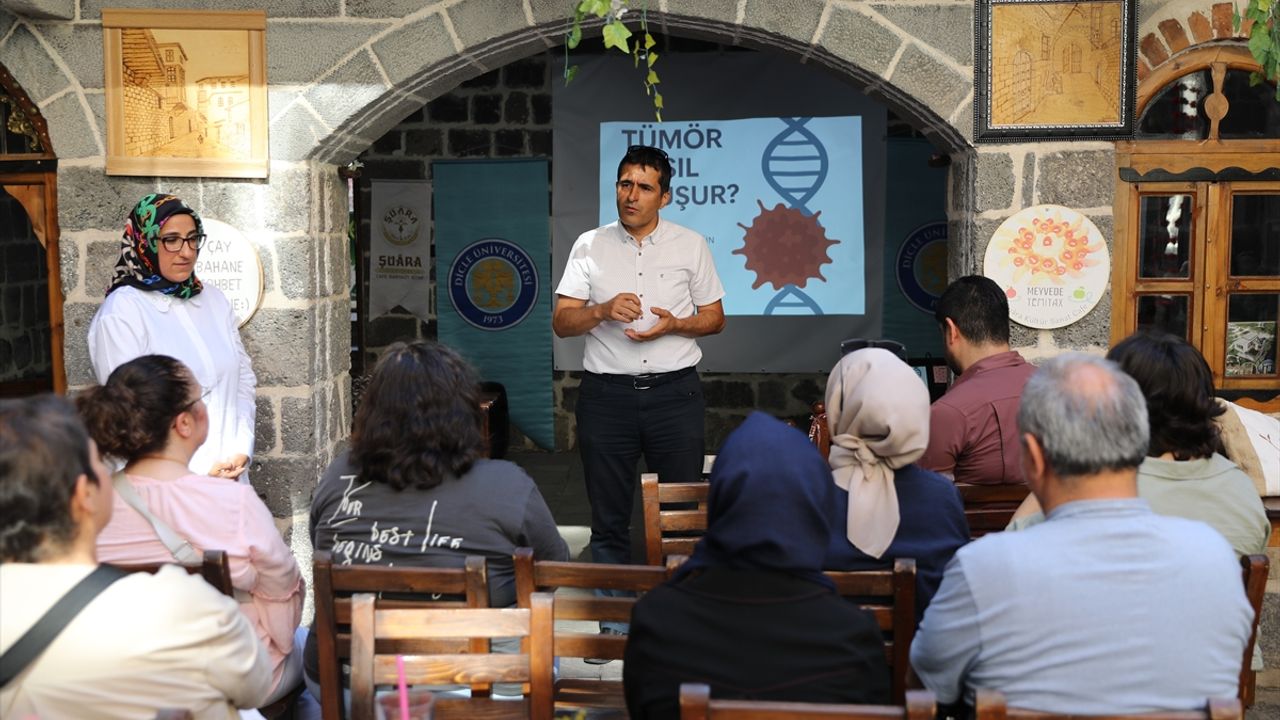 YÖK'ün ülke genelindeki üniversitelerde başlattığı "Bilim Kafe" etkinliği kapsamında merkez Sur ilçesindeki bir kafede DÜ Tıp Fakültesi Tıbbi Biyoloji Anabilim Dalı Öğretim Üyesi Prof. Dr. Sevgi İrtegün Kandemir tarafından tümörün ne olduğu, nasıl oluştuğu, çeşitleri, kanser tarama yöntemleri ve kanserden korunma yolları anlatıldı.
