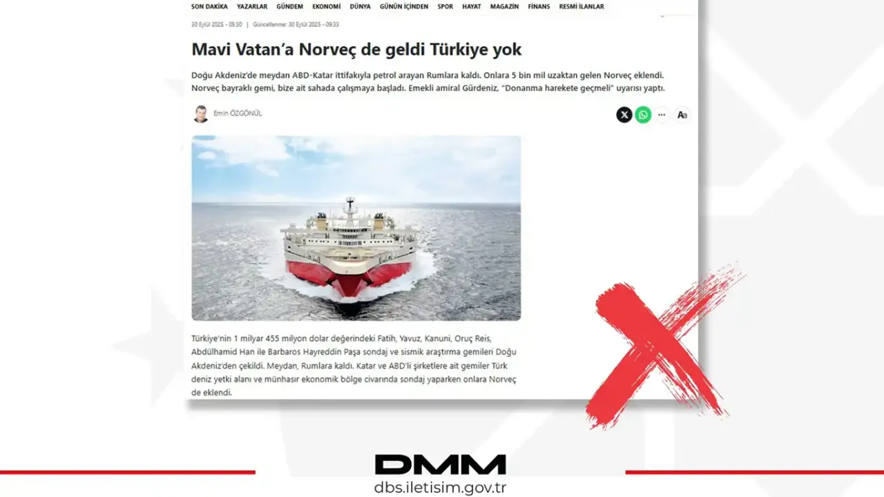 Sonuç olarak; Türkiye’nin Mavi Vatan konusundaki kararlılığını hedef alan bu iddialar gerçeği yansıtmamaktadır. Kamuoyunun yanıltıcı bilgilere itibar etmemesi önemle rica olunur."