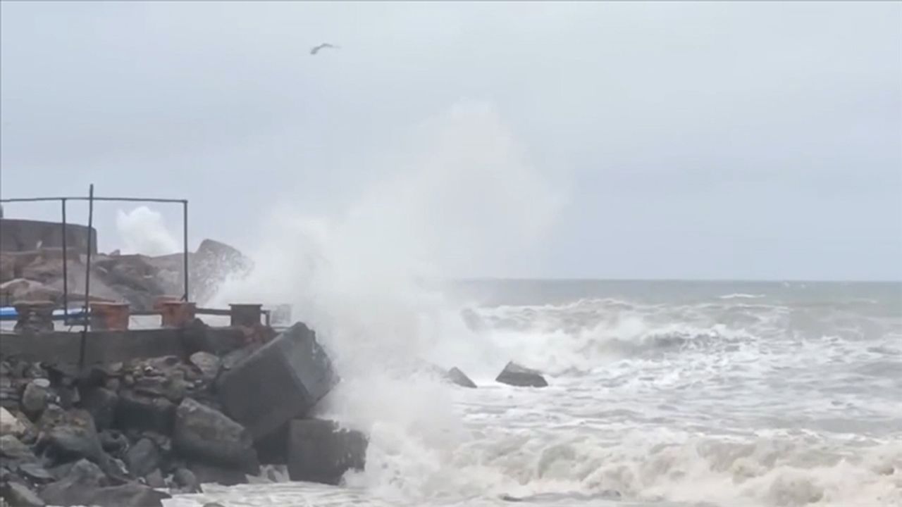 Rüzgar nedeniyle boyu 4 metreye yaklaşan dalgalar, zaman zaman kıyı şeridindeki dalgakıranları aştı.