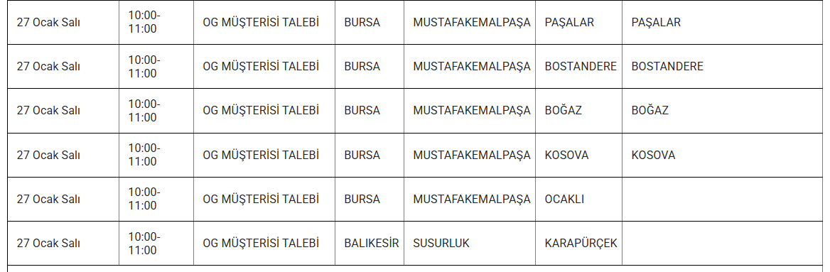Bursa'da 27 Ocak'ta gerçekleşecek elektrik kesintileri, UEDAŞ; tarafından yürütülen planlı çalışmalar kapsamında yapılacak. Elektrik kesintileriyle ilgili anlık gelişmeler, dağıtım şirketinin resmi web siteleri üzerinden takip edilebiliyor.